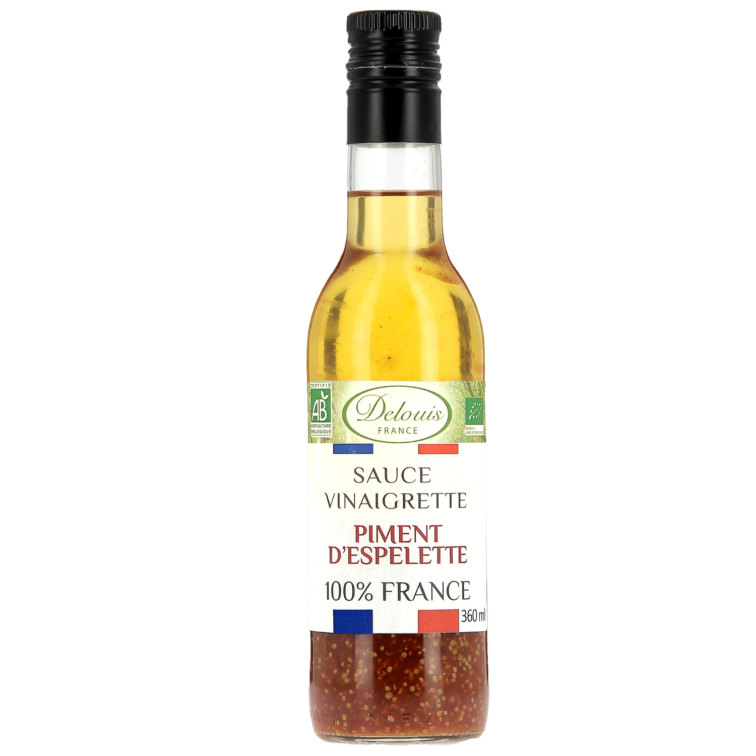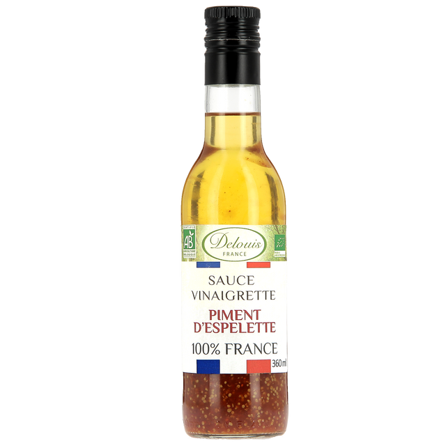 La vinaigrette Sauce vinaigrette au Piment d'Espelette 360 ml de la marque Delouis est élaborée en France - Nouvelle-Aquitaine. Volume : 360 ml. Conditionnement : Bouteille verre.