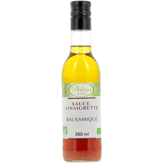 La vinaigrette Sauce vinaigrette vinaigre Balsamique 360 ml (AB) de la marque Delouis est élaborée en France - Nouvelle-Aquitaine. Volume : 360 ml. Conditionnement : Bouteille verre.
